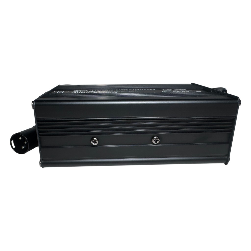 Cargador 54,6V 5A con carcasa de aluminio resistente, que proporciona carga segura y estable para baterías de mayor voltaje.