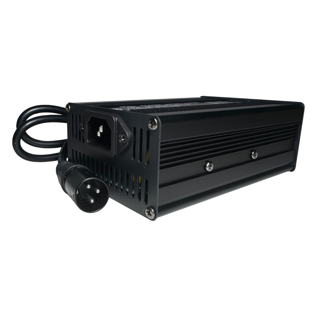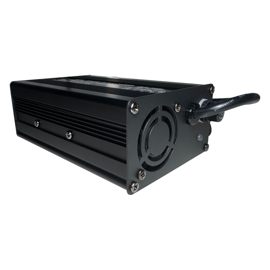 El cargador de baterías de litio de alta calidad, acabado en aluminio y con sistema de refrigeración avanzada, es un dispositivo diseñado para ofrecer una carga eficiente, segura y duradera en aplicaciones industriales y profesionales. A continuación, se detallan sus características principales. Tecnología de carga CC-CV que se adapta perfectamente a la curva de carga de baterías de litio del mercado.